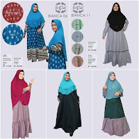 Koleksi terbaru Gamis Set Syar'i Laveil BIANCA 06, 11, 12, 13, 14 untuk anda yang ingin tampil syari dengan design simple gamis motif dengan dipadu kerudung polos cantik. Gamis dengan bawahan lebar berbahan maxmara berkualitas